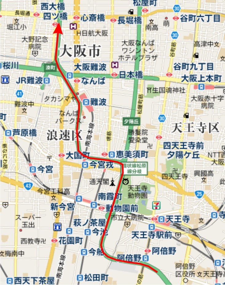 四ツ橋あたりで