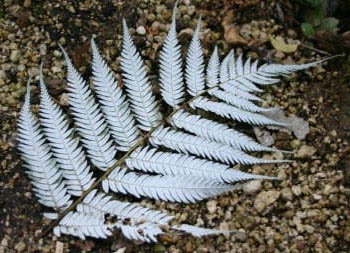 葉の裏側だけが写真のように白くなる種類のシダだそうです。