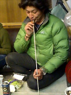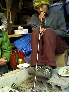 5パイのステンパイプにて、火をおこす人たち。