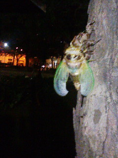 クマゼミの羽化です。まだまだ羽が青いです。キレイ!実は昆虫少年だったんです。