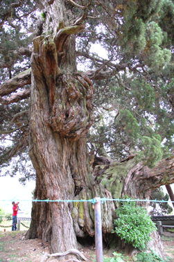 写真は1500年前に応神天皇が植えたとされるシンパクの樹です。
